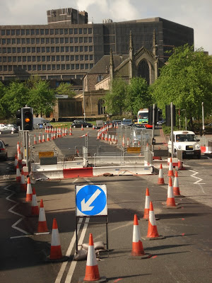 V této době nevypadá centrum Edinburku právě nejvábněji. Staví se totiž tramvajová trať (dokončená má být v roce 2011), takže všechno je rozkopané a ohraničené červenobílou páskou. Bohužel je touto akcí dotčeno i St Andrew's Square, odkud odjíždí mnoho autobusů městské dopravy. Někdy informovanost vázne; je sice fajn, že na nefunkční zastávce je napsáno, že je dočasně mimo provoz, ale aby tam napsali, kam je přesunutá, to ne. Takže kdybyste někdo jel teď do Edinburku a potřeboval jako my linku 15 nebo 26, tak vězte, že autobus odjíždí z George Street, hned za rohem St Andrew's Square.