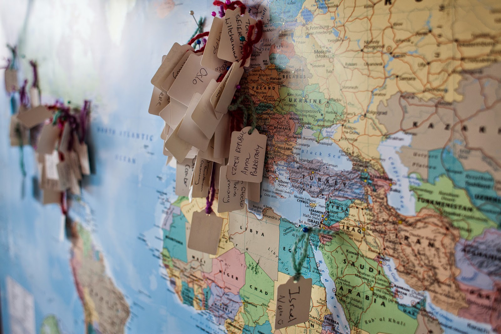 V rámci Shetlandského muzea a archivu byl vyčleněn jeden sál jako základna pro Týden vlny. Po registraci si člověk mohl připíchnout špendlík na mapu světa...