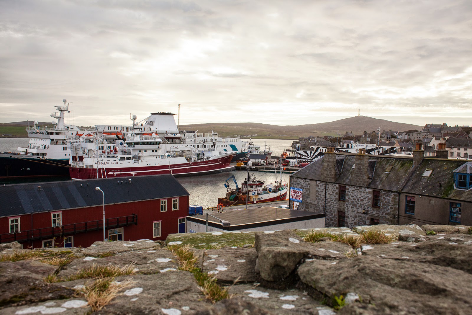 Po dvou dnech, kdy jen lilo a fičel vítr (tak moc, že v úterý ani nejel trajekt), se ve středu počasí smilovalo a ukázalo, jak to v Lerwicku vypadá, když neprší a dokonce vysvitne i slunce.